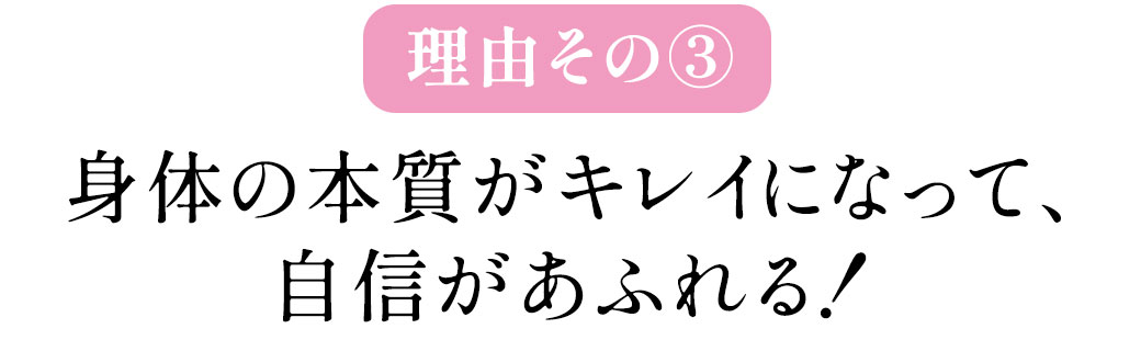 身体の本質とは人の体が持つ本来の働きや機能の根本です。本質が整うことで痩せて、肌も美しくなって、メンタルすらも安定させることが出来ます。心も体も今まで以上に輝けるようになるんです。だって、本質が整うのだから。本質が整ったカラダとココロが、これからのあなたをより一層輝かせてくれます。